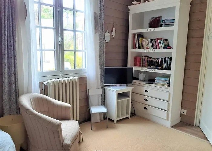 La villa Villa Chalet Baulois se trouve à 450 mètres de l'église Notre-Dame de La Baule-Escoublac et à 10 minutes de marche du Casino Barrière de La Baule. La villa propose des chambres avec un balcon, un vestiaire et un canapé.